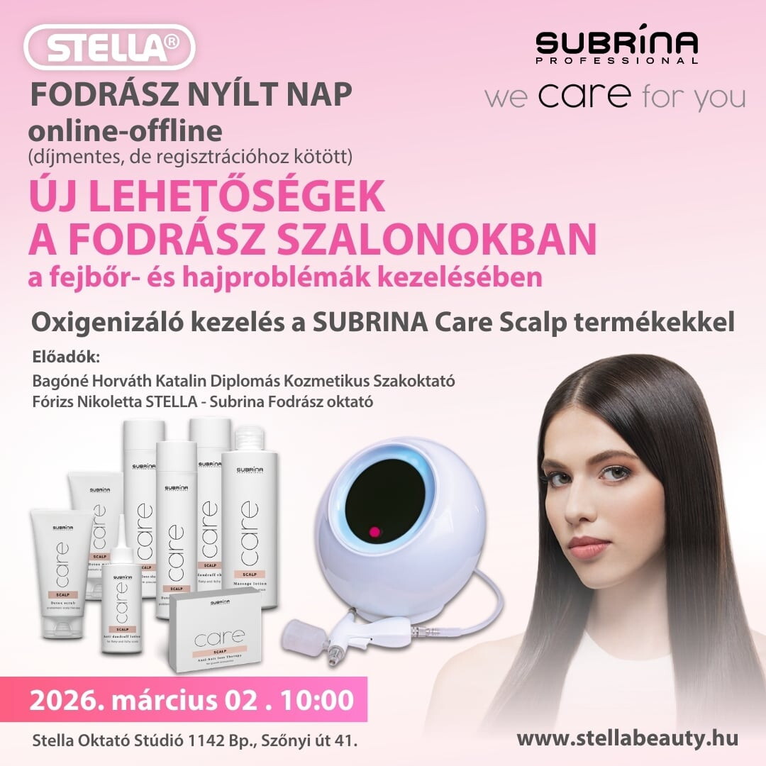 Fodrász NYÍLT NAP - 2026.03.02. SUBRINA Professional CARE Scalp termékcsaládot, valamint az Oxygenizáló kezelés. (online-offline)